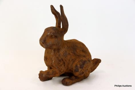 20th century The cast iron figure of an alert rabbit with rust patina. Height: 33cm Length: 30cm Width: 19cm