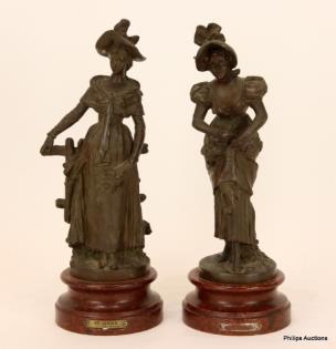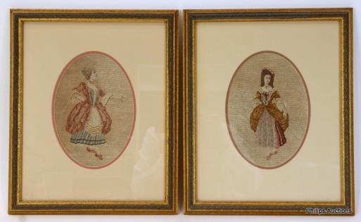 circa 1900 Each depicting a lady in promenade dress in oval reserve and housed in gilt frames. Height: 40.5cm Width: 33.5cm