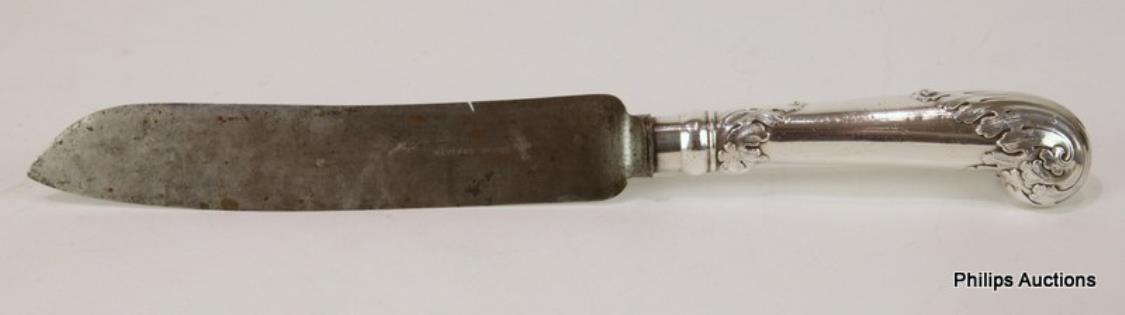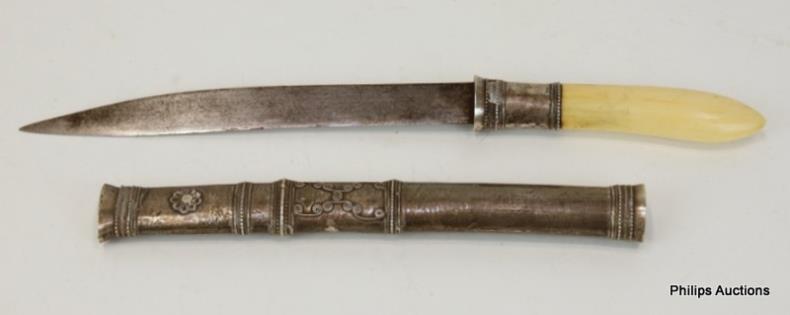 19th century With ivory handle and silver scabbard with filigree detailing. Length: 29.5cm