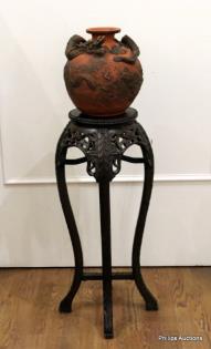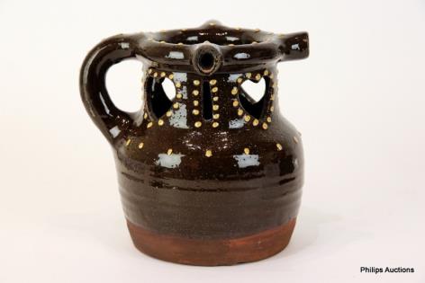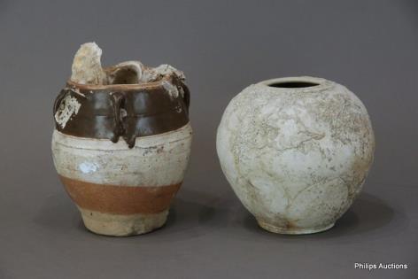 The small amphora (oil flask) of typical form with a pointed foot (a/f), probably ancient Roman, 3rd century B.C. Length: 21.5cm