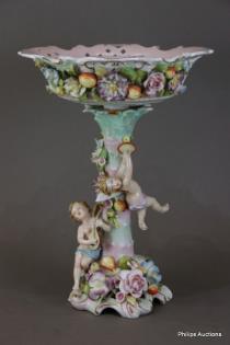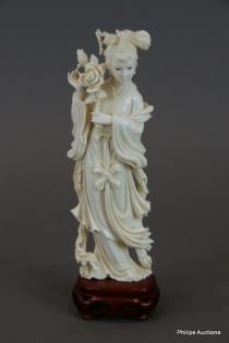 early 20th century In the early Victorian manner, the shaped top opening to reveal a well-fitted interior with lidded compartments, pin cushion, mirror, and with drawer below, supported by scroll supports to a turned and carved column on a shaped base with tripod scroll feet. Height: 76cm Width: 50cm Depth: 41cm