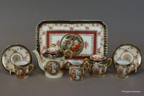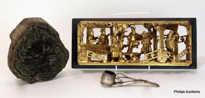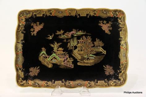 Comprising a chinoiserie lacquered pencil case, a lacquered snuff box printed to the cover with a farmers scene and enclosing miniature books including a miniature History of England (Goode Brothers, London, 1910), together with a pair of grape scissors and an iron candle snuffer. Height: 3cm Length: 20cm Width: 5.5cm (pencil case) Length: 19cm and smaller