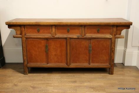 Circa 1930s Of plain form with a rectangular Rosso Verona marble top above three drawers and a bottom cupboard, flanked by side cupboards, in well-figured thuya veneer, all raised upon block feet, with key. Height: 103cm Width: 141cm Depth: 58cm