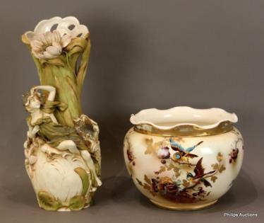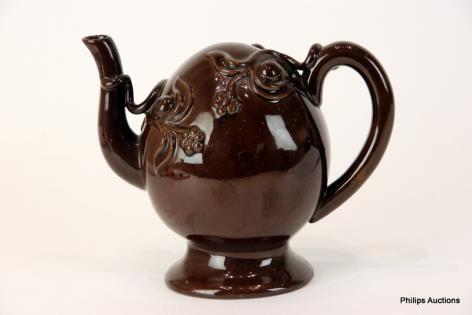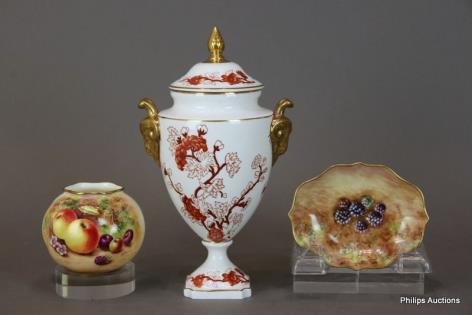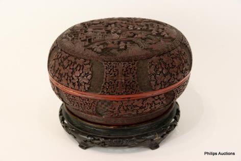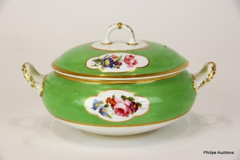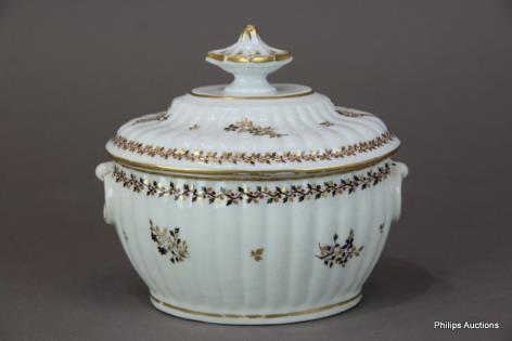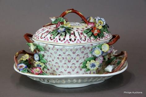 The oval bowl and cover with S-scroll twin handles, the cover carved with an intricate band of fruiting vines, to a lobed bowl with trailing foliage detailing upon a scrolling socle. Height: 21cm Length: 31cm Width: 15cm