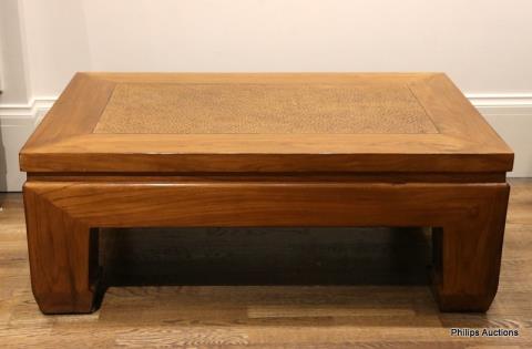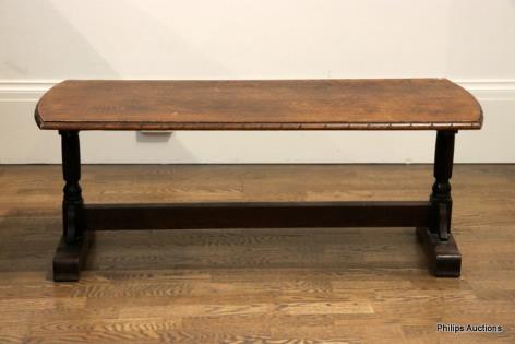 20th century With curved short ends and moulded edges, upon turned supports with stretcher. Height: 48cm Length: 122cm Width: 43cm