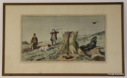 early 20th century Comprising two small silhouette bust portraits, scissors cut from black inked paper mounted on white card, one embossed with Handrup mark, together with a later printed photograph of a full length silhouette family portrait. Height: 36.5cm Width: 53cm and smaller