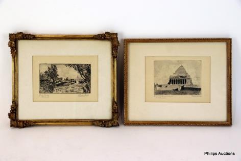 Dated 1913 and 1934 The framed full length silhouette portraits, scissors cut from black inked paper mounted on white by American silhouette artist Baron Scotford (active 1910-1940s), comprising one of Gertrude and Herbert Green, signed, embossed, and dated May 1913 and one of Marjorie Gibbon (née Green) and Leonard Gibbon, signed and dated 1934, with his later work showing more 'slash work'. Height: 40cm Width: 32cm