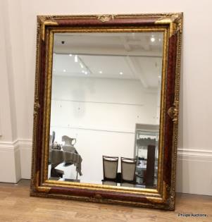 Mid-19th century The gently arched mirror frame with an acanthus flourish carved crest and ornate column supports with foliate scrolls to the extended base with two cavetto profile frieze drawers above a pair of panelled cupboards flanked by corbels, upon a plinth base. Height: 162cm Width: 121cm Depth: 49cm