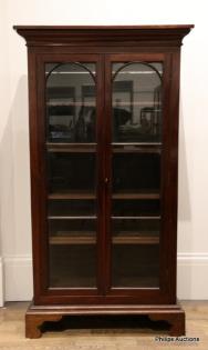 late 19th century With an everted pediment above double glazed doors with arched detailing and opening to internal shelves, upon a later Georgian style extended base with bracket feet. Height: 168cm Width: 93cm Depth: 42cm