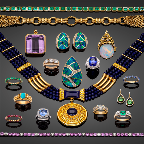 A premium selection of Antique and Modern Jewellery, rings, dress rings, earrings, hoop earrings, bracelets, pendants, chains, pocket watches, studs, pearl drop earrings, pearl necklaces, loose stones, watches, brooches, chains, fob chains, antique seals, cufflinks, silver ingot, collectable coins, bangles and other luxury items such as leather goods, available for sale by timed online auction.