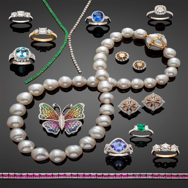 A premium selection of Antique and Modern Jewellery, rings, dress rings, earrings, hoop earrings, bracelets, pendants, chains, pocket watches, studs, pearl drop earrings, pearl necklaces, loose stones, watches, brooches, chains, fob chains, antique seals, cufflinks, silver ingot, collectable coins, bangles and other luxury items such as leather goods, available for sale by timed online auction.