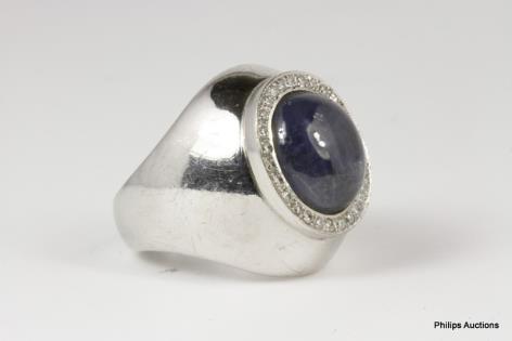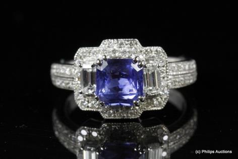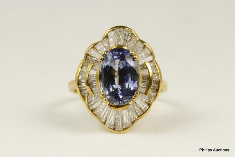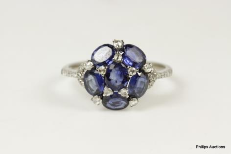 A LARGE SAPPHIRE AND DIAMOND BALLERINA CLUSTER RING