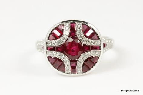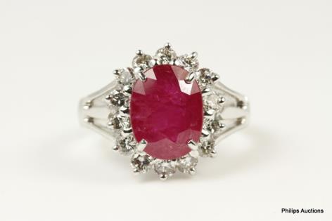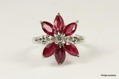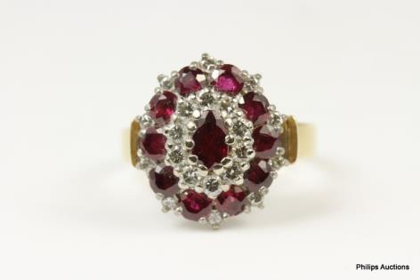 A RUBY AND DIAMOND CLUSTER DRESS RING