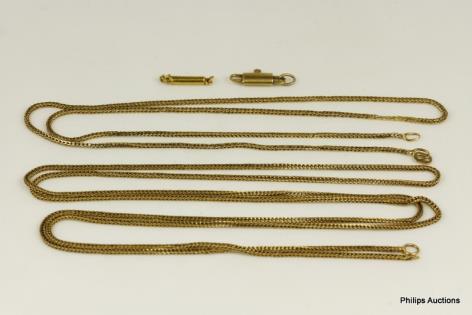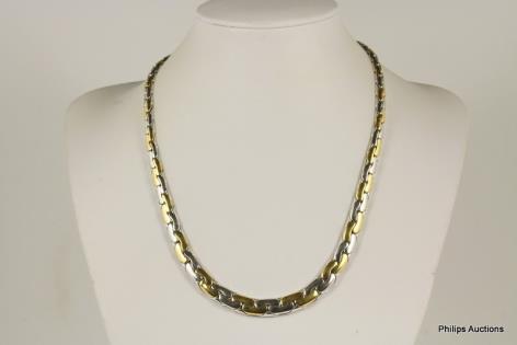 A BEAUTIFUL QUALITY TWO TONE SMOOTH LINK 18CT GOLD CHAIN