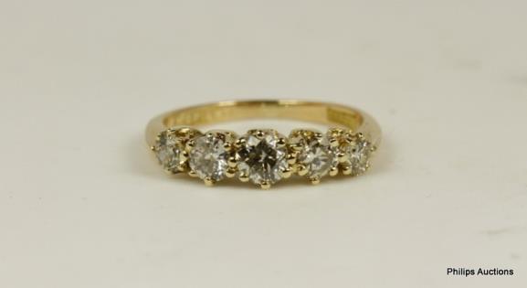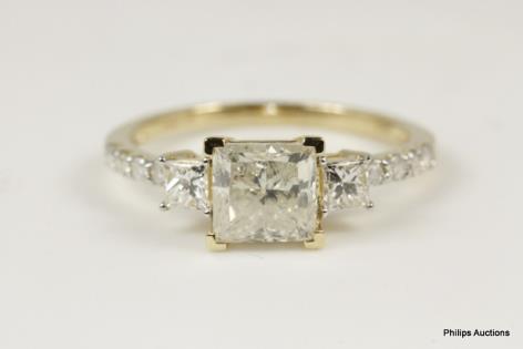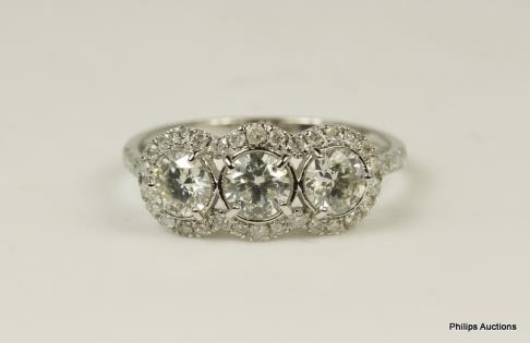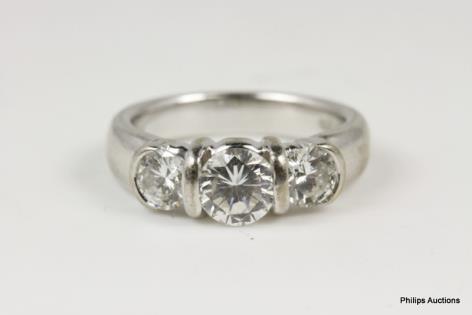 A MODERN THREE STONE DIAMOND RING TOTALLING 1.50CT