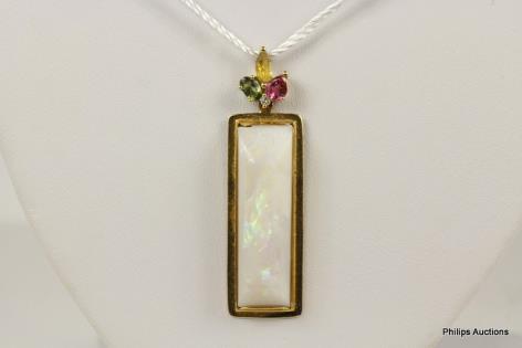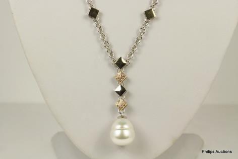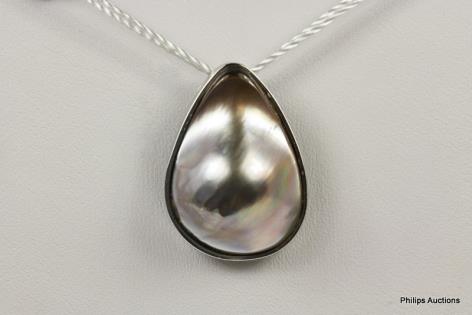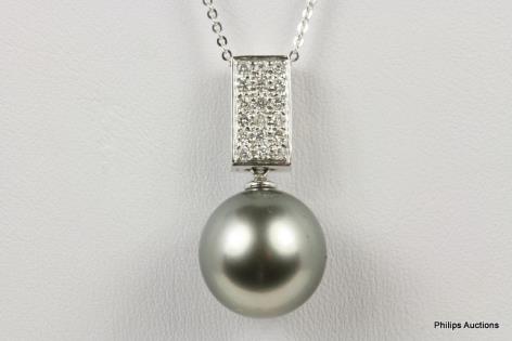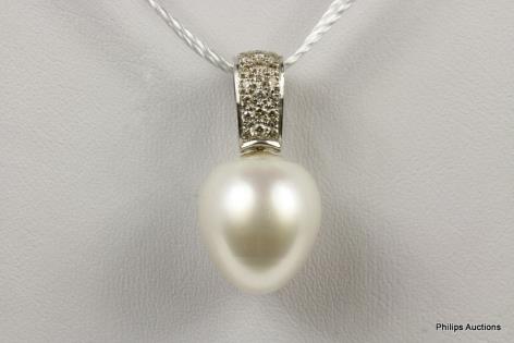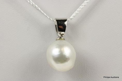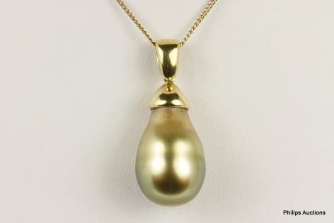 A STRIKING PEAR SHAPED GOLDEN GREEN SOUTH SEA PEARL PENDANT
