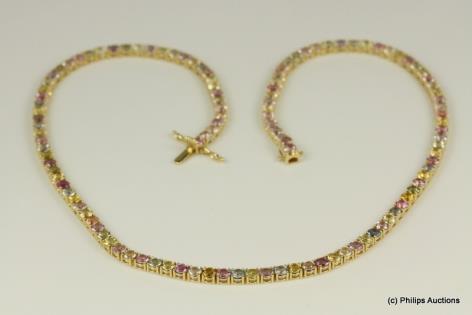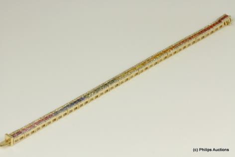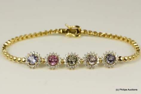 A DELIGHTFUL MULTI COLOURED SAPPHIRE AND DIAMOND BRACELET