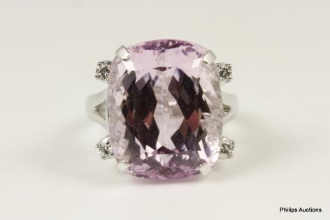 A LARGE MODERN KUNZITE AND DIAMOND DETAILED DRESS RING