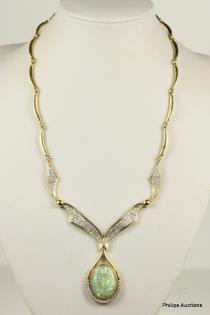 AN IMPRESSIVE SOLID BOULDER OPAL AND DIAMOND DROP NECKLACE