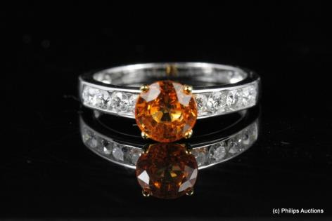 A VIBRANT MANDARIN GARNET & DIAMOND DRESS RING