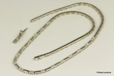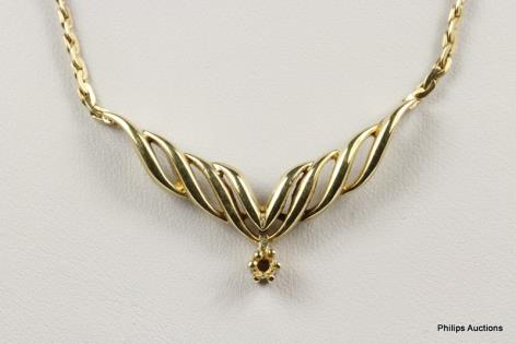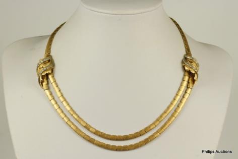 A FINE QUALITY DIAMOND DETAILED SATIN FINISH GOLD COLLIER