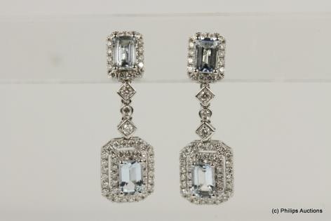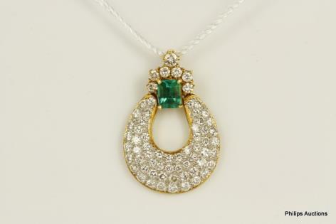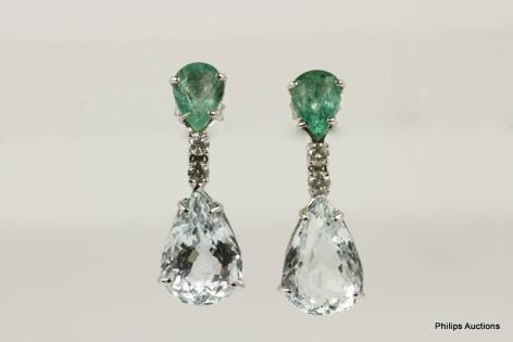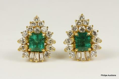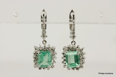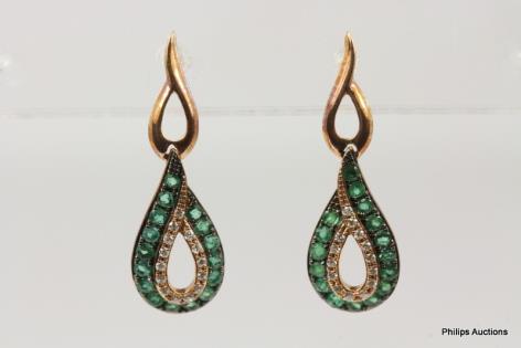 A LOVELY PAIR OF CLUSTER EMERALD AND DIAMOND DROPS