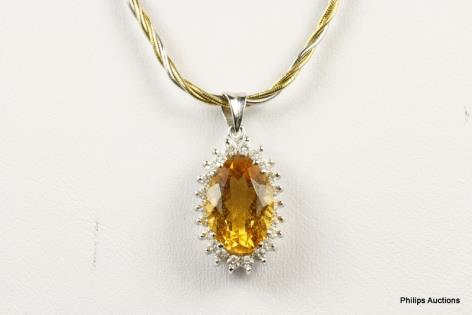 A CITRINE AND DIAMOND CLUSTER PENDANT
