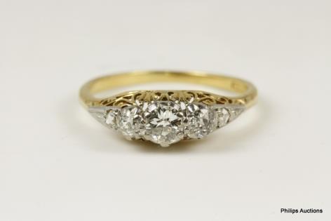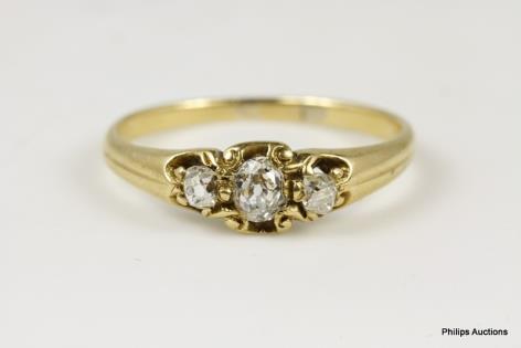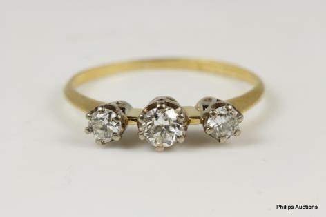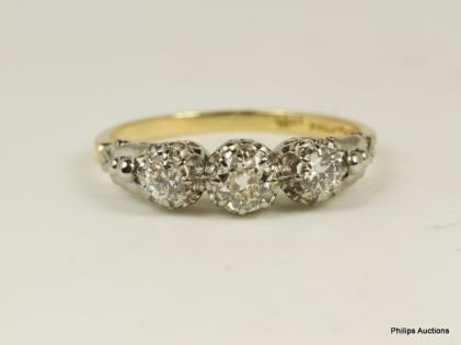 A THREE STONE OLD CUT DIAMOND RING TOTALLING 0.56CT