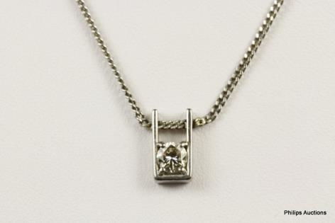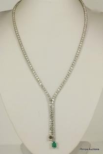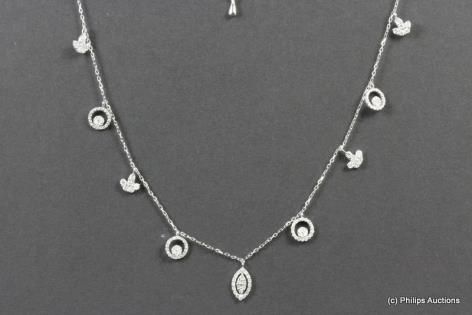 A DELICATE DIAMOND SET TASSEL STYLE NECKLET