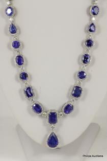 A TANZANITE AND DIAMOND SET PENDANT ON CHAIN