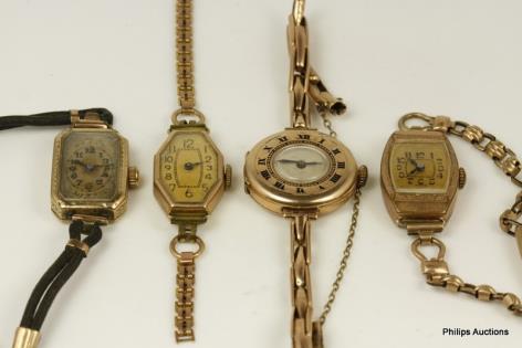 SIX 9CT ROSE GOLD LADIES VINTAGE WATCH BRACELETS