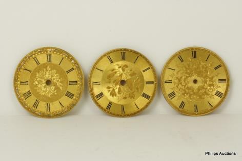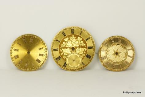THREE 18CT YELLOW GOLD POCKET WATCH DIALS