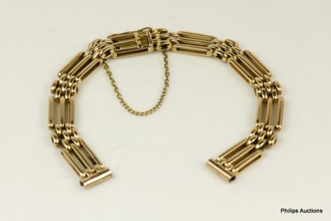 A QUALITY 15CT YELLOW GOLD LADIES GATE LINK WATCH BRACELET