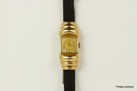 A STYLISH 18CT YELLOW GOLD LADIES RETRO WRISTWATCH