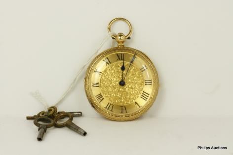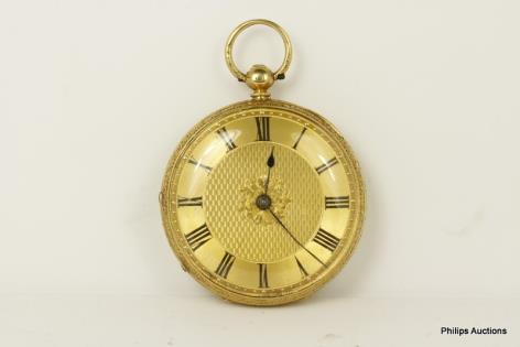 AN 18CT YELLOW GOLD OPEN FACED POCKET WATCH