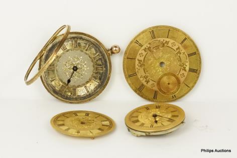 TWO 18CT YELLOW GOLD POCKET WATCH DIALS AND OTHER