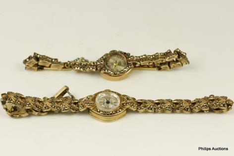 TWO 9CT YELLOW GOLD VINTAGE MARCASITE SET LADIES WATCHES