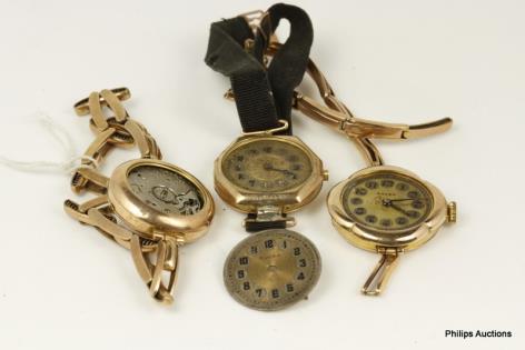 AN OFFERING OF 9CT LADIES CASE PARTS, ALL ROUND, OVAL
