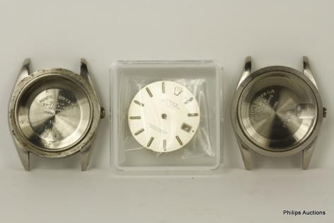 TWO ROLEX STEEL DATE CASES AND ONE MOVEMENT. Sale Room Notice. ONE DIAL NOT MOVEMENT
