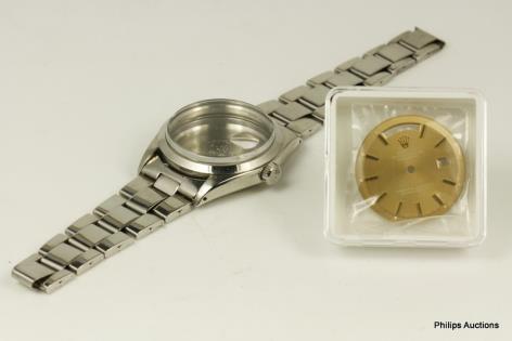 A STEEL ROLEX DATE CASE AND DIAL