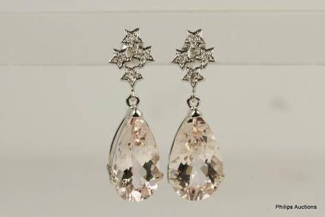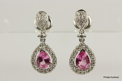 A PRETTY PAIR OF PINK SAPPHIRE AND DIAMOND DROP EARRINGS