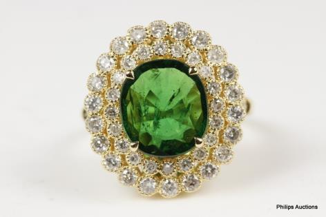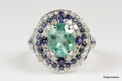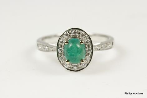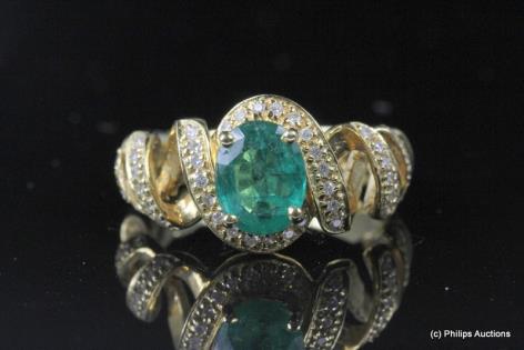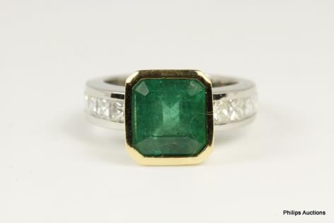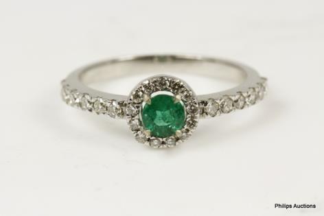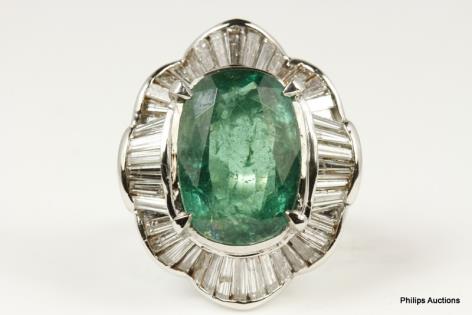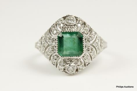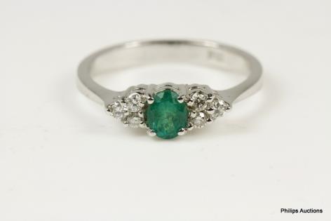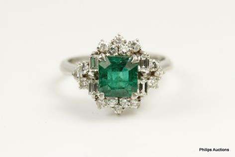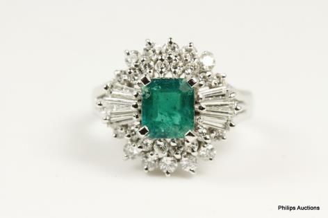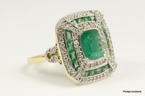 A VIBRANT VINTAGE EMERALD AND DIAMOND SET DRESS RING