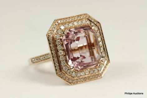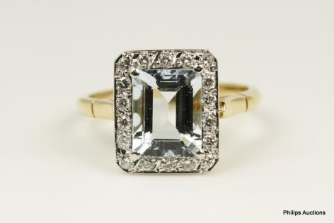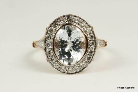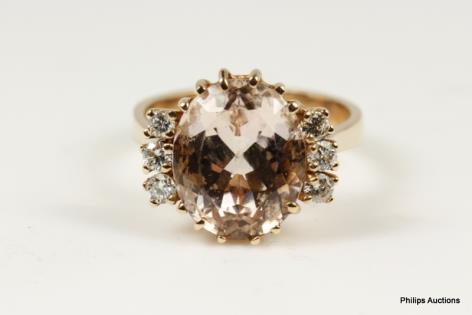 A PRETTY MORGANITE AND DIAMOND DETAILED DRESS RING