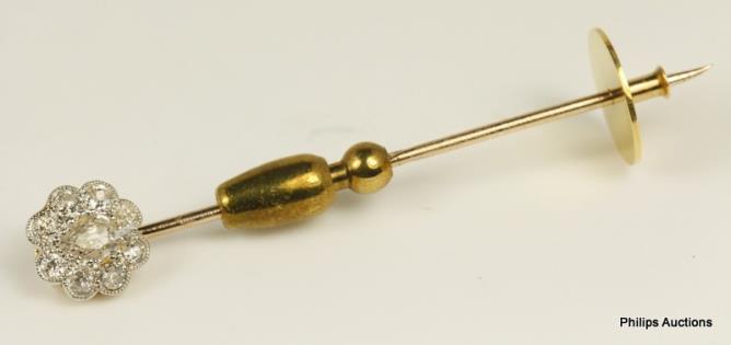 A BEAUTIFUL OLD CUT DIAMOND SET STICK PIN