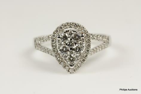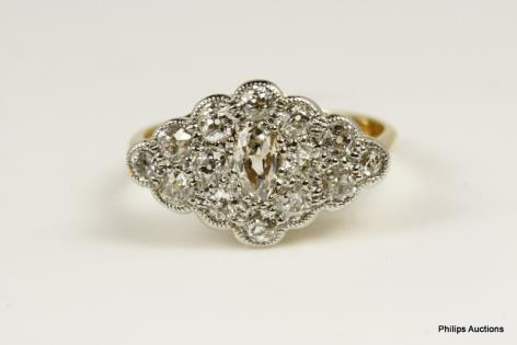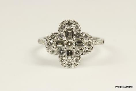 A MULTI STONE DIAMOND CLOVER SHAPED DRESS RING