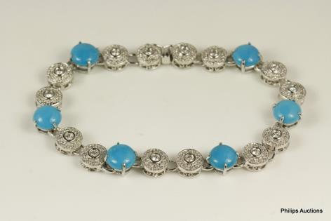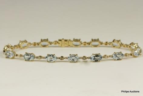 A DELICATE AQUAMARINE AND DIAMOND DETAILED BRACELET