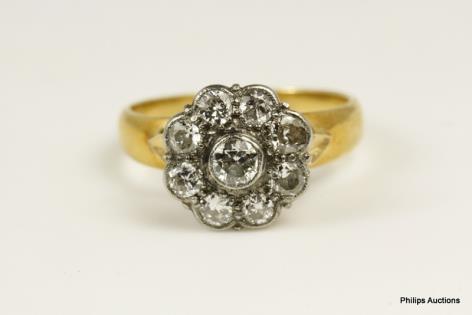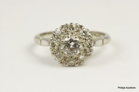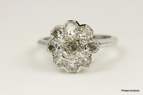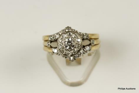 AN ILLUSION SET DIAMOND CLUSTER RING AND TWO FITTED BANDS