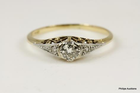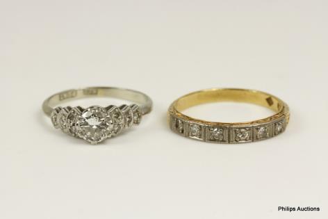 AN ANTIQUE DIAMOND SET BAND RING & TRANSITION CUT SOLITAIRE DIAMOND RING