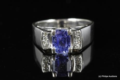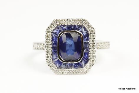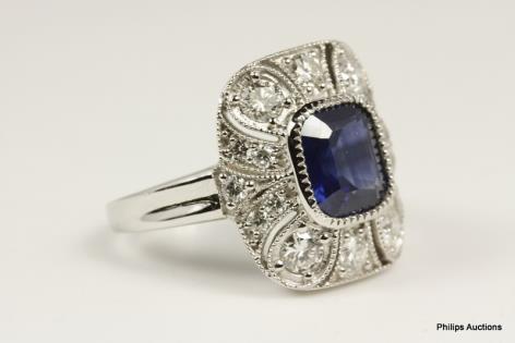 A FANCY SAPPHIRE AND DIAMOND RECTANGULAR PLAQUE RING