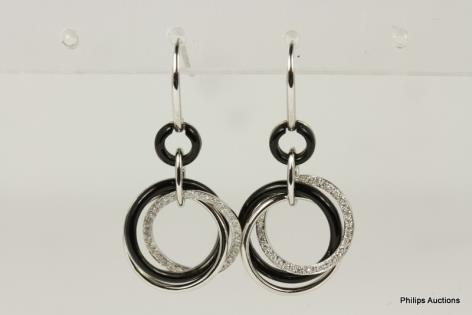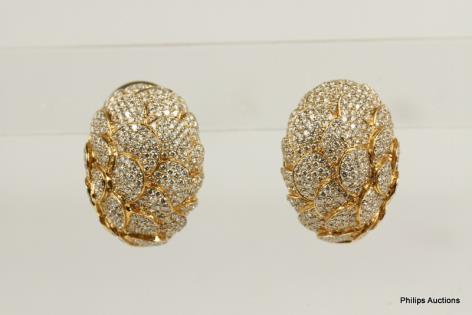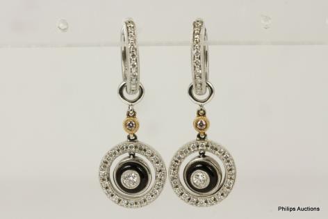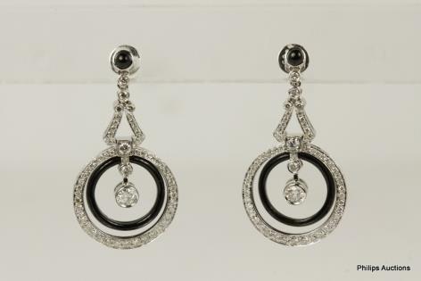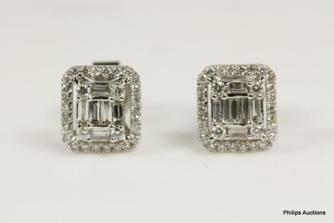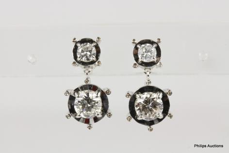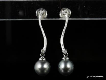 A PAIR OF TAHITIAN PEARL AND DIAMOND SET EARRINGS